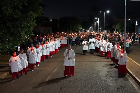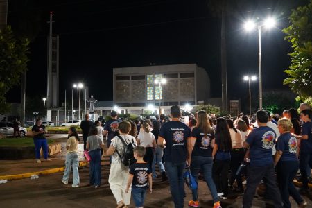A concentração teve início às 16 horas na Comunidade Nossa Senhora Aparecida, onde os participantes foram acolhidos com louvores e animação, preparando o coração para o percurso. Em seguida, as comunidades saíram em caminhada pelas ruas de Rio Brilhante, levando luz e oração por onde passavam. As velas acesas nas mãos dos fiéis simbolizaram a fé que ilumina e renova corações.