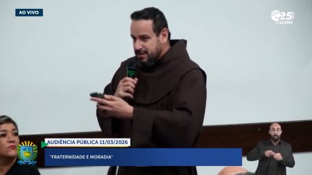 Durante a Audiência Pública da Campanha da Fraternidade 2026, realizada no dia 11 de março na Assembleia Legislativa de Mato Grosso do Sul, em Campo Grande, Frei Wagner José da Rosa, OFM, assessor eclesiástico da Pastoral Indigenista da Arquidiocese, apresentou a realidade da moradia enfrentada por irmãos indígenas em situação de vulnerabilidade.