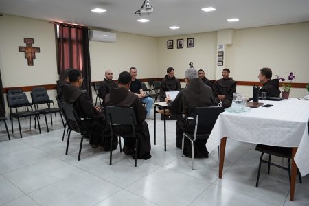 Frei Massimo recordou ainda o convite de Jesus Cristo a não temer os desafios e as mudanças dos tempos atuais, exortando os frades a responderem com esperança e coragem, vivendo com fidelidade os conselhos evangélicos. Ao final, ressaltou que toda a Ordem está unida e próxima da Custódia em seu serviço pastoral e missionário e em sua busca de redimensionamento.