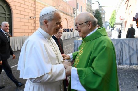 O Papa, portanto, se sentiu em casa e saudou especialmente o pároco, Pe. Mario Millardi, bem como o novo Prior Geral da Ordem de Santo Agostinho, Padre Joseph Farrell. Pe. Robert Francis Prevost era o Prior quando o Papa Francisco celebrou nesta paróquia poucos dias depois de eleito, em 17 de março de 2013. Entre os concelebrantes, havia também o padre Gioele Schiavella, a quem o Santo Padre saudou com afeto pelos seus 103 anos há pouco completados.