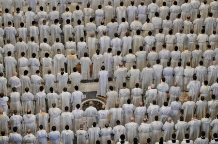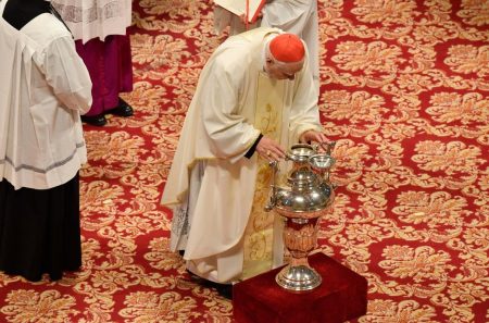 Na manhã desta Quinta-feira Santa (17/04), na Basílica de São Pedro, especialmente bispos e cerca de 1800 sacerdotes participaram da Missa do Crisma também chamada de Missa dos Santos Óleos ou da Unidade, já que são abençoados os óleos que serão usados nas cerimônias sacramentais do Batismo, Crisma e Unção dos Enfermos. Na celebração, presidida pelo cardeal Domenico Calcagno, presidente emérito da Administração do Patrimônio da Sé Apostólica, também foram renovadas as promessas sacerdotais, feitas no dia da Ordenação, quando receberam a unção do Espírito Santo por meio do óleo do Crisma.
