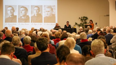 Conta-se que, em 1943, doze jovens franciscanos em formação chegaram ao campo da Deutsche Reichsbahn em Colônia; de lá, em setembro, foram deportados para o campo de concentração de Buchenwald. Os dois oradores enfatizaram sua determinação em viver juntos e reorganizar a vida comunitária em meio aos bombardeios incessantes. Foram descobertos cuidando de doentes, cantando em encontros sociais, mobilizando seus companheiros para vestir e alimentar prisioneiros ucranianos e russos, sabotando equipamentos, ajudando prisioneiros a escapar, substituindo camaradas à beira da exaustão e participando da Ação Católica — o serviço de capelania clandestino e então proibido —, sendo posteriormente espancados, condenados à prisão perpétua e combatendo epidemias de tifo e disenteria. A assembleia se comoveu ao ouvir seus testemunhos, imbuídos de amor pela espiritualidade franciscana à qual dedicaram suas vidas: “São Francisco, em meu lugar, não teria agido de forma diferente”, repetiu o Frei Gérard Cendrier.
