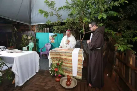 Freis franciscanos e Irmãs Lauritas celebraram o rito do Lava-Pés na tarde desta quinta-feira (17) com 92 famílias indígenas da etnia Terena, na Aldeia Água Funda, área ocupada e não reconhecida pelo poder público, localizada no extremo noroeste de Campo Grande.